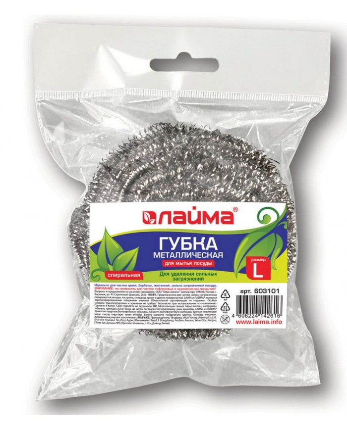 Губка (мочалка) для посуды металлическая LAIMA, БОЛЬШАЯ, спиральная, 50 г