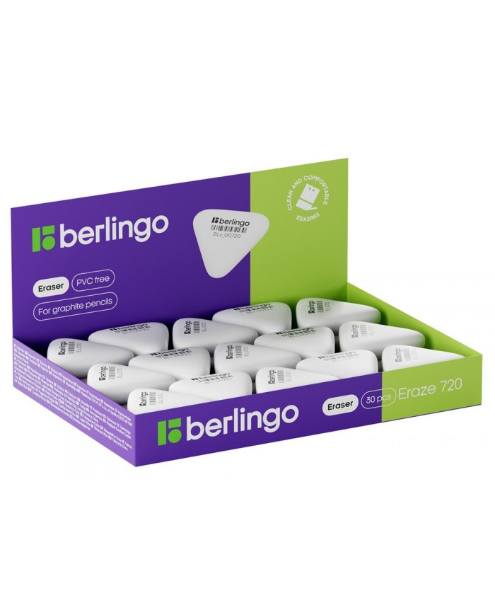 Ластики Berlingo "Eraze" выполнены из термопластичной резины. Не токсичны, не содержат ПВХ и фталатов. Прекрасно справляются с линиями от чернографитного карандаша, не оставляют следов и грязных разводов после себя. Не повреждают бумагу. Еще меньше пыли и мусора после стирания благодаря добавлению dust-free в состав. Ластики поставляются в дисплей боксах.