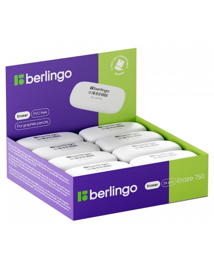 Ластики Berlingo "Eraze" выполнены из термопластичной резины. Не токсичны, не содержат ПВХ и фталатов. Прекрасно справляются с линиями от чернографитного карандаша, не оставляют следов и грязных разводов после себя. Не повреждают бумагу. Еще меньше пыли и мусора после стирания благодаря добавлению dust-free в состав. Ластики поставляются в дисплей боксах.