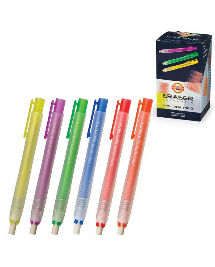 Ластик выдвижной KOH-I-NOOR, 132х15х15 мм, белый, пластиковый держатель ассорти, натуральный каучук