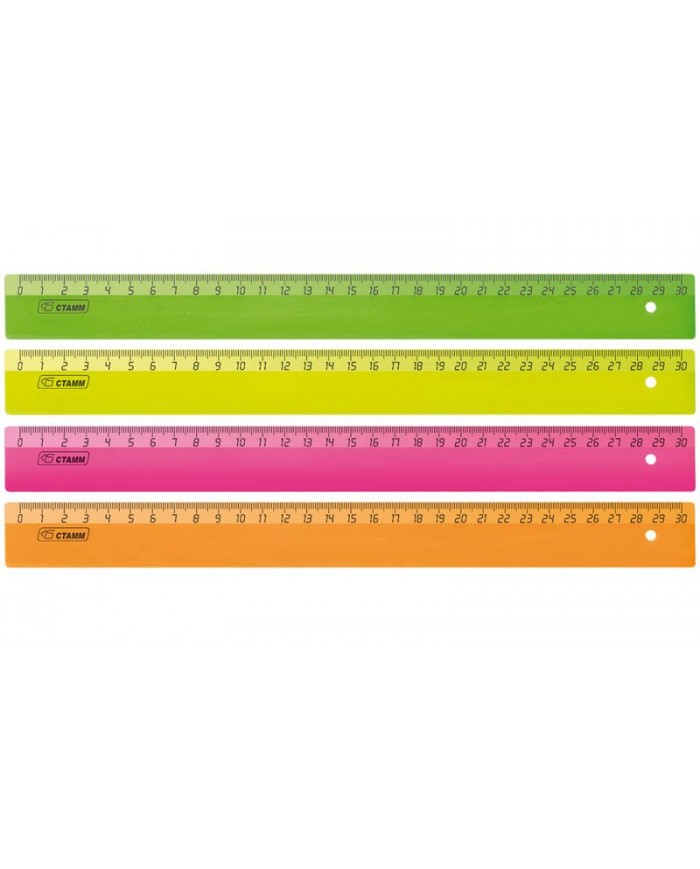 Линейка 30 см. пластмассовая флюор. Пр.РФ