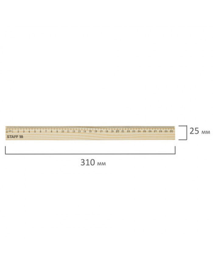 Линейка деревянная 30 см, STAFF, канадская сосна,