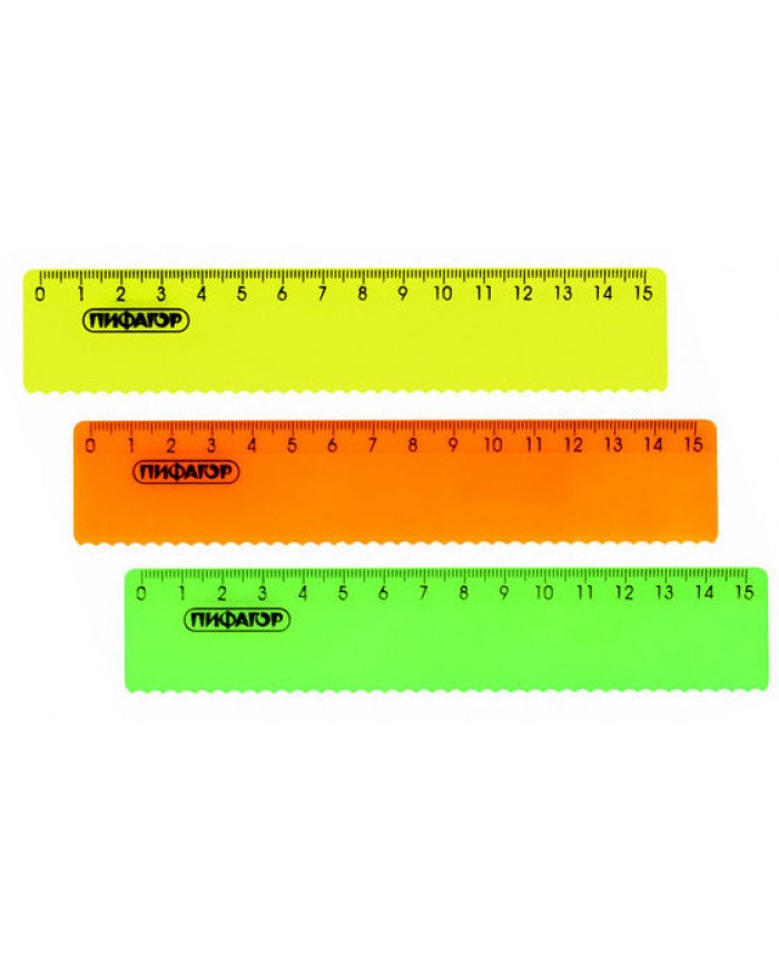 Линейка пластиковая 15 см, ПИФАГОР, неоновая, ассорти, с волнистым краем,