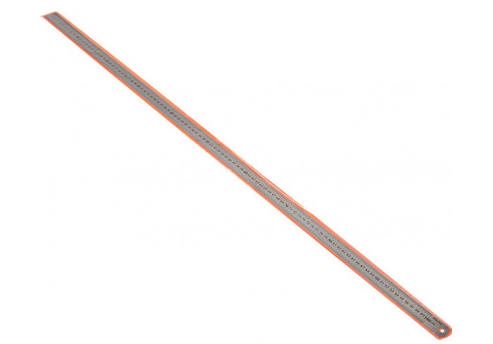 Линейка металлическая, с двухсторонней гравировкой. Изготовлена из высококачественной стали, толщиной 1 мм. Длина шкалы 100 см, ширина 2,8 см. Поставл..