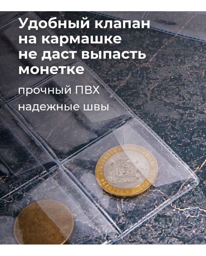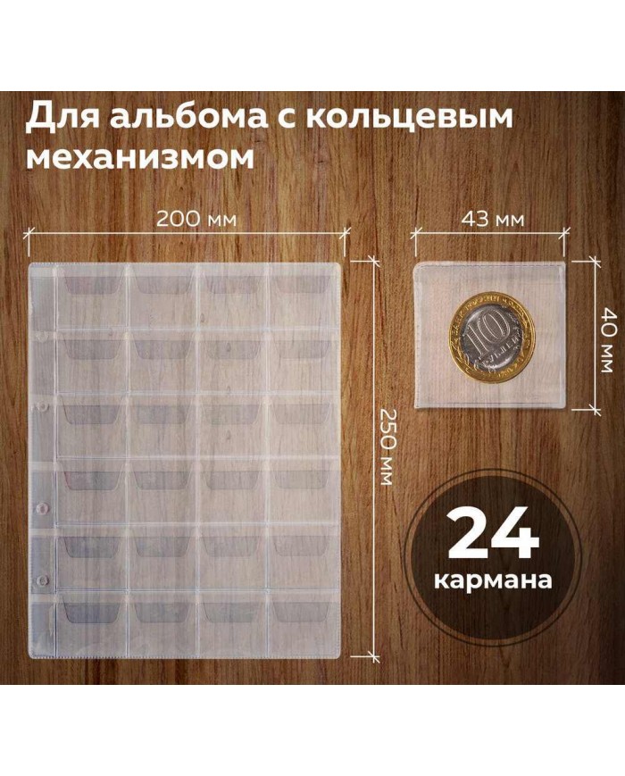 Листы-вкладыши для альбома "OPTIMA" на 24 монеты d до 38 мм, КОМПЛЕКТ 10 шт., 200х250 мм, ПВХ, STAFF