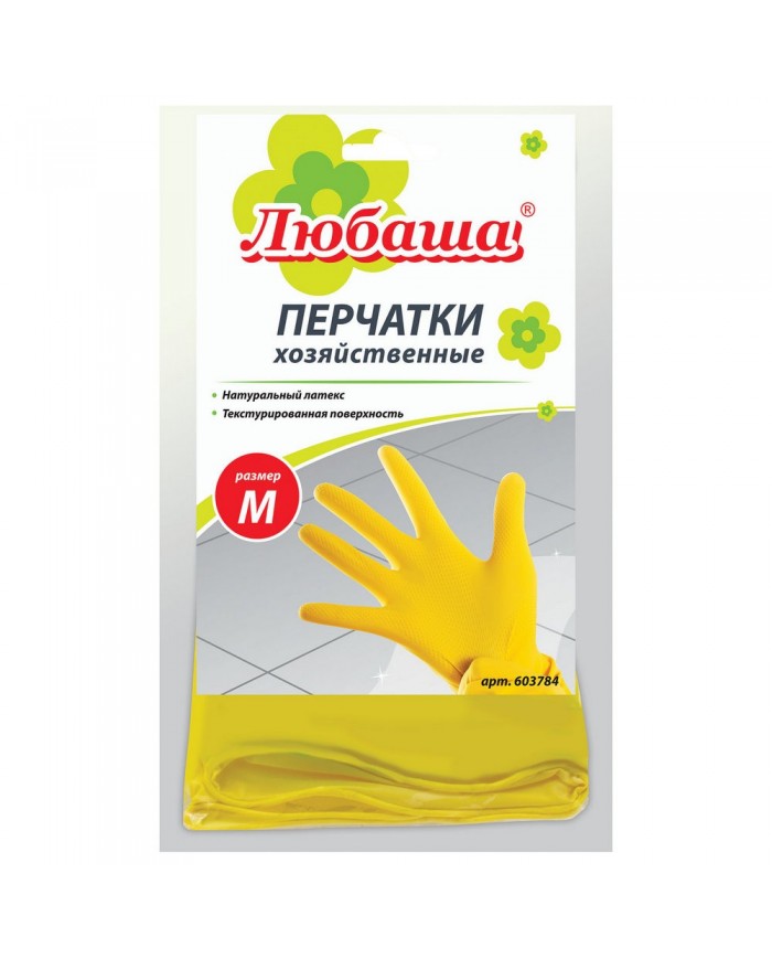 Перчатки хозяйственные латексные ЛЮБАША ЭКОНОМ, МНОГОРАЗОВЫЕ, хлопчатобумажное напыление, размер M (