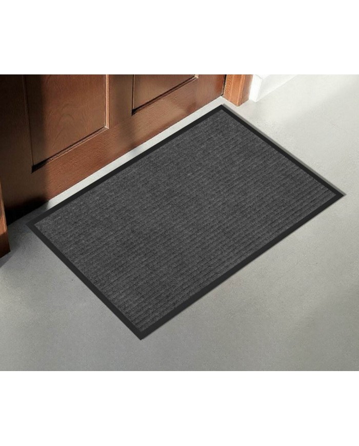 Коврик влаго-грязезащитный ЛЮБАША – практичное и эффективное решение для защиты помещения от грязи и влаги. Ворс коврика изготовлен из полиэстера, который отлично впитывает влагу и задерживает мелкие частицы грязи с подошв обуви. Коврик имеет прямоугольную форму. ПВХ-основа предотвращает скольжение и обеспечивает устойчивость на полу. Основные преимущества влаговпитывающего коврика: Надежная грязезащита и влаговпитывание, что снижает количество уборок в помещении; Износостойкость и устойчивость к деформациям и перепадам температуры; Простота ухода – коврик можно пылесосить; Безопасность за счет нескользящей основы, особенно актуально в осенне-зимний период. Основные характеристики: Размер – 60х90 см. Толщина – 7 мм. Ворс изготовлен из полиэстера. Коврик выполнен в сером цвете. Во избежание скольжения рекомендуется укладывать коврик на чистую увлажненную поверхность (пыль и песок повышают вероятность скольжения ковра). Рекомендации, которые на 100% исключат скольжение ковра на любых напольных покрытиях: 1. Применить противоскользящую ленту. Её наклеивают по периметру коврика с обратной (изнаночной) стороны. 2. Использовать силиконовые наклейки. Они крепятся с изнаночной стороны в углы коврика (обычно нужно 4 наклейки на один коврик). 3. Применить резиновый клей. Им промазывают всю поверхность коврика, при этом и коврик, и кафель в момент приклеивания должны быть сухими и чистыми. Или использовать любой двусторонний скотч. 4. Использовать фиксаторы для ковров. Это специально разработанные подушечки, которые можно поместить под углы коврика. Обычно они состоят из двух частей – липкой, которая приклеивается к подложке коврика, и рельефной, которая прижимается к полу. 5. Использовать липучки для ковров. Одну сторону липучки прикрепляют к изнанке ковра, а другую – к полу. При сжатии застёжки-липучки создают прочное соединение, препятствующее скольжению.