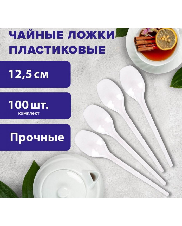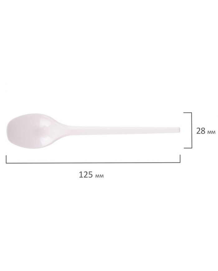 Ложка чайная одноразовая пластиковая 125 мм, белая, КОМПЛЕКТ 100 шт., ЭТАЛОН, БЕЛЫЙ АИСТ,