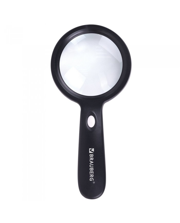 Лупа просмотровая с LED-ПОДСВЕТКОЙ, диаметр 90 мм, увеличение 10, корпус черный, BRAUBERG