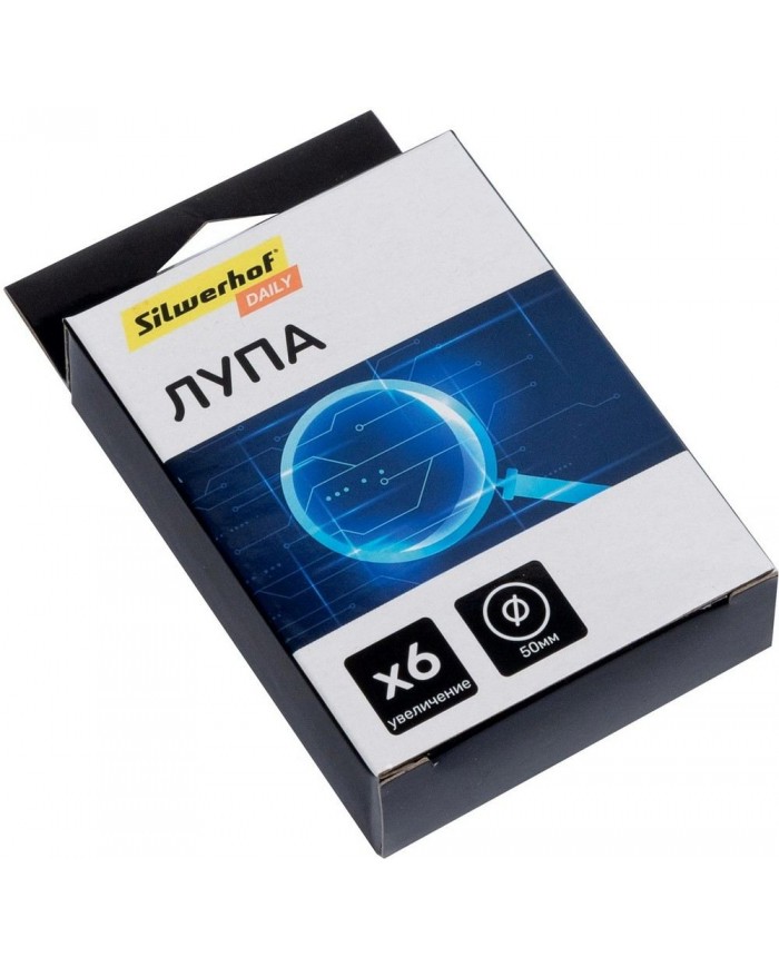 Лупа имеет пятикратное увеличение и диаметр 80 мм. Корпус выполнен из пластика черного цвета, линза стеклянная...