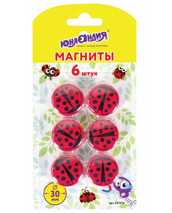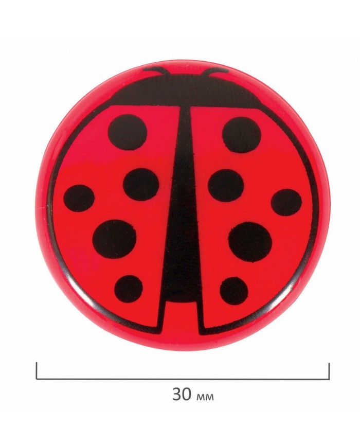 Магниты ЮНЛАНДИЯ 30 мм, НАБОР 6 шт., "БОЖЬЯ КОРОВКА", красные,