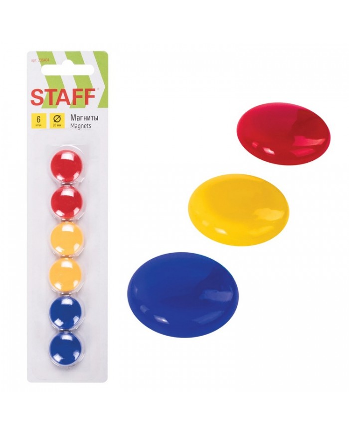 Магниты МАЛОГО ДИАМЕТРА, 20 мм, КОМПЛЕКТ 6 штук, цвет АССОРТИ, в блистере, STAFF "Basic"