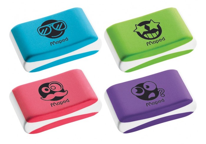 Практичные эргономичные мягкие ластики различных цветов с рисунком компактного размера..