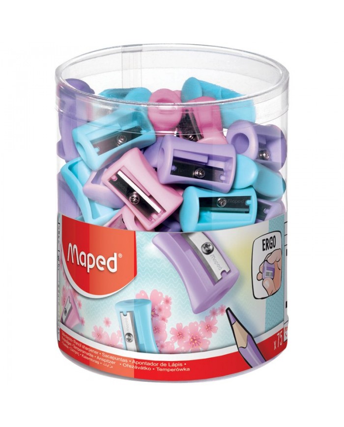 Точилка пластиковая Maped "Vivo Pastel", 1 отверстие, без контейнера, пастел. цвета, ассорти