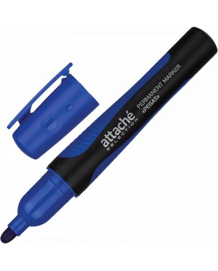 Особая нестираемая основа перманентного маркера Attache Selection Pegas синего цвета обеспечивает такие качества, как стойкость к воздействию воды, ультрафиолета, низких и высоких температур. Можно маркировать, среди прочего, пластмассовые, деревянные, металлические, стеклянные или картонные предметы. Цвет колпачка соответствует цвету чернил. Круглый, эластичный наконечник обладает повышенной износостойкостью и обеспечивает экономный расход чернил. Отличается продленной линией письма. Изделие не перезаправляется. Плотно закрывается колпачком, что предотвращает высыхание наконечника и чернил. Толщина линии письма - 2-5 мм в зависимости от угла наклона. Спиртовая основа быстросохнущих чернил. Круглая форма корпуса из прочного пластика, с эргономичными вставками синего цвета, колпачок снабжен клипом.