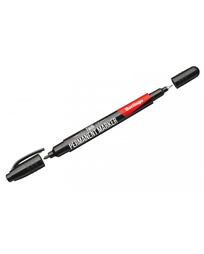 Маркер перманентный двухсторонний Berlingo черный, пулевидный, 0,5/1мм