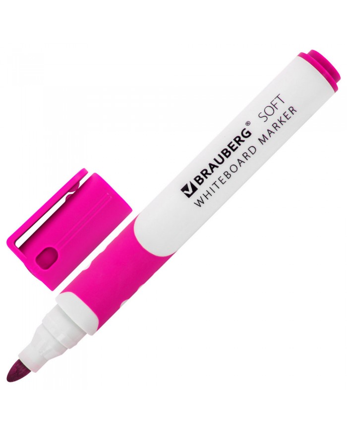 Маркер стираемый для белой доски РОЗОВЫЙ, BRAUBERG "SOFT", 5 мм, резиновая вставка,