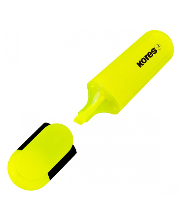 Текстовыделитель Kores со скошенным наконечником. Предназначен для выделения текста на различных типах бумаги. Позволяет проводить линии толщиной от 0..