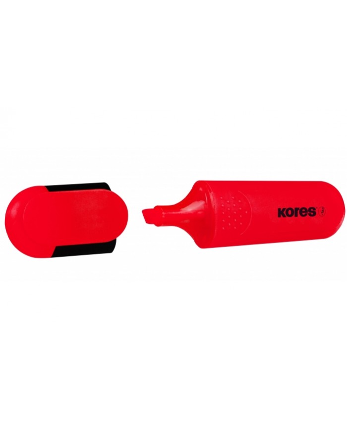 Текстовыделитель Kores со скошенным наконечником. Предназначен для выделения текста на различных типах бумаги. Позволяет проводить линии толщиной от 0..