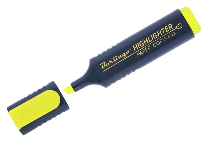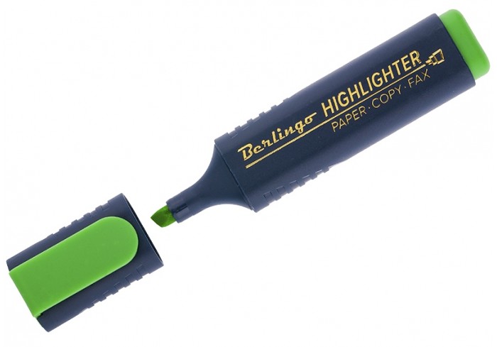 Яркий флуоресцентный текстовыделитель с полупрозрачным колпачком..