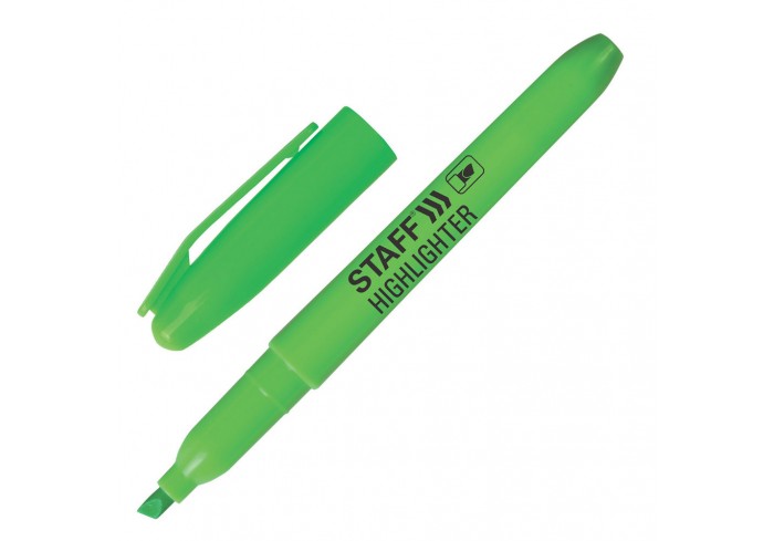 Текстовыделитель зеленого цвета обладает круглой формой корпуса диаметром 12 мм. Корпус тектовыделителя оснащен удобной зоной захвата. Скошенный након..