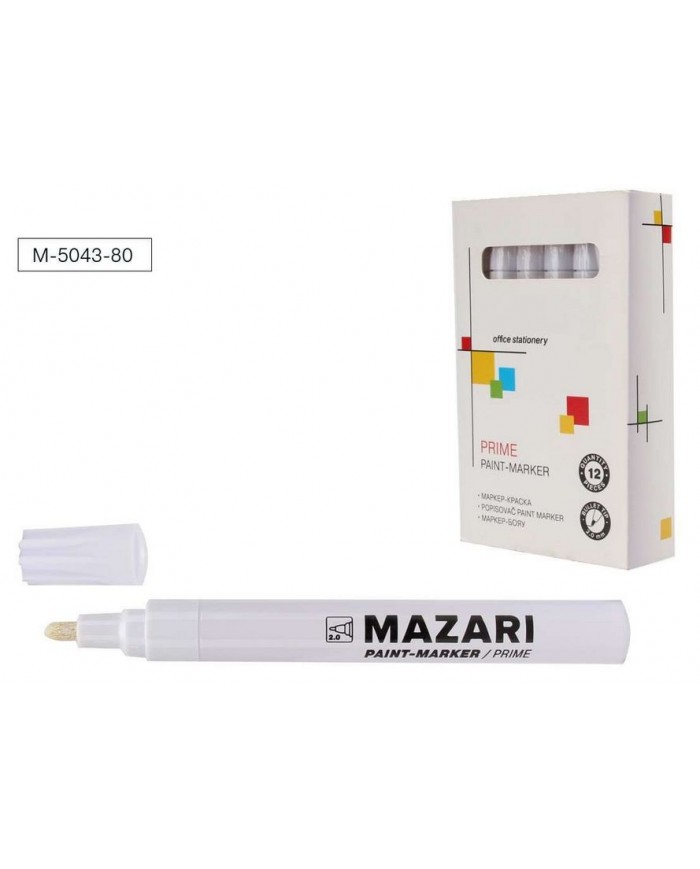 Маркер-краска PRIME, БЕЛЫЙ, корпус алюминиевый, пулевидный наконечник, ширина линии письма 2мм, карт
