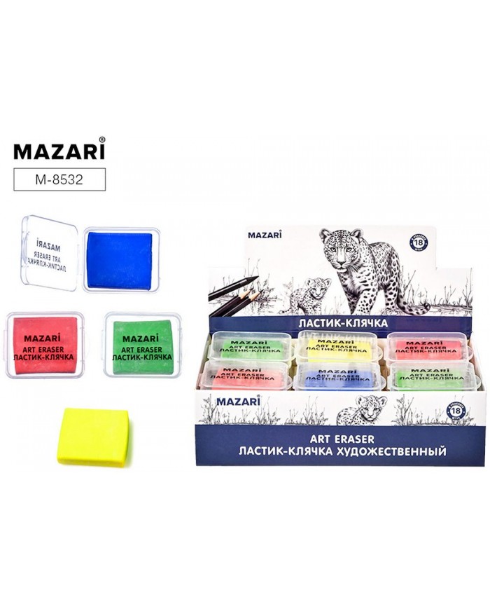 Ластик-клячка художественный, 4*4*1см, ассорти 4 цвета, футляр