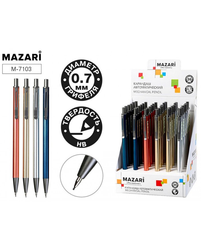 Карандаш автоматический чернографитный BLIK, диаметр грифеля 0.7 мм, НВ, корпус круглый металлически