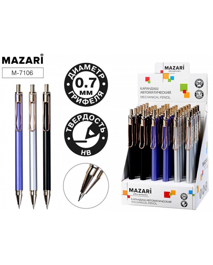 Карандаш автоматический чернографитный ENDER, диаметр грифеля 0.7 мм, НВ, корпус круглый металлическ