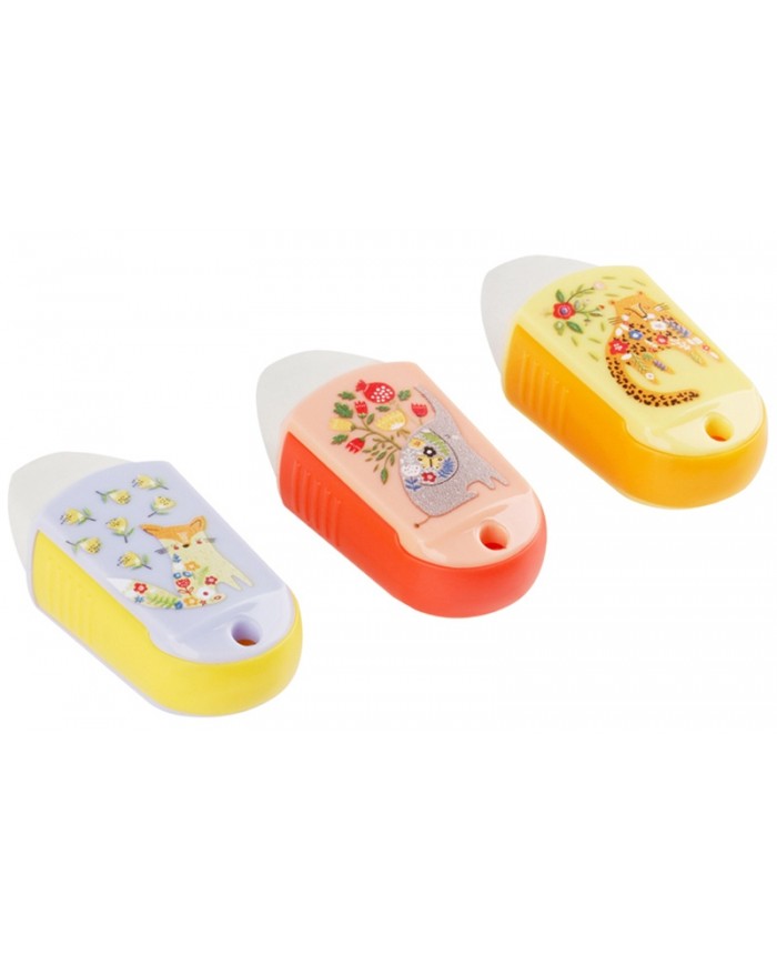 Точилка пластиковая с ластиком MESHU "Spring breath" 1 отверстие, ассорти