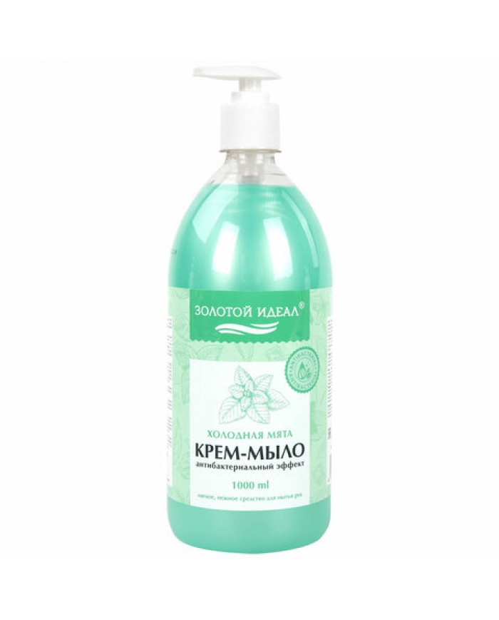 Мыло-крем жидкое с АНТИБАКТЕРИАЛЬНЫМ ЭФФЕКТОМ 1 л ЗОЛОТОЙ ИДЕАЛ "Холодная мята", дозатор,