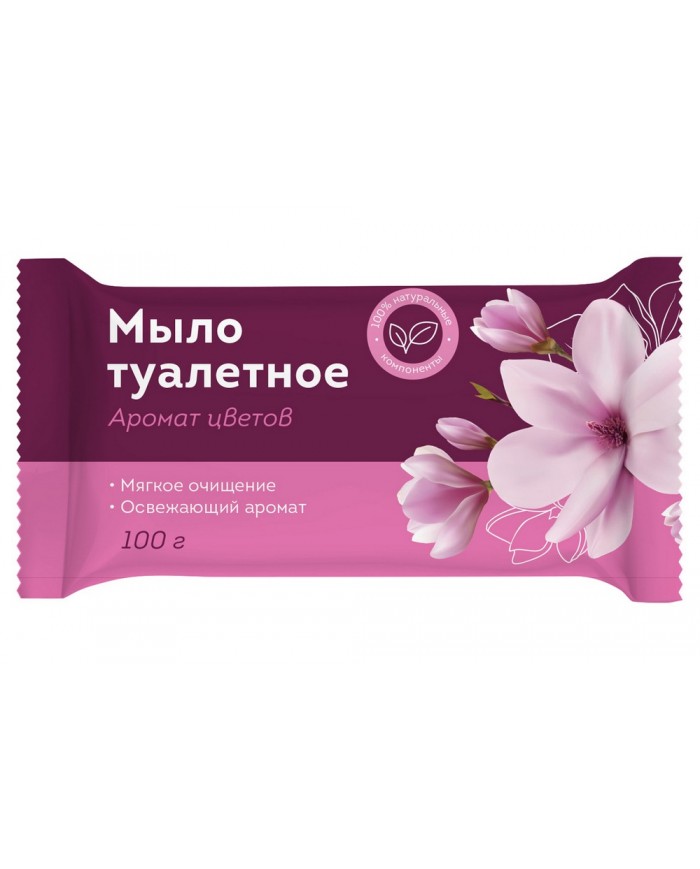 Мыло туалетное OfficeClean "Аромат цветов", флоу-пак, 100г.