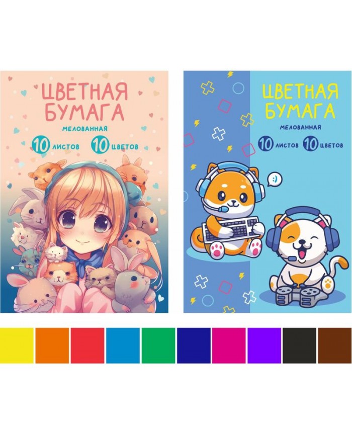 Набор цветной бумаги мелов. А4 10 л.10 цв. Друзья, в папке, одностор., 2 диз. в кор