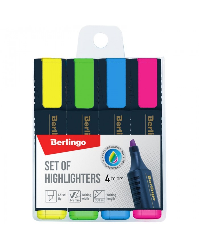 Набор текстовыделителей Berlingo 4цв., 1-5мм, европодвес