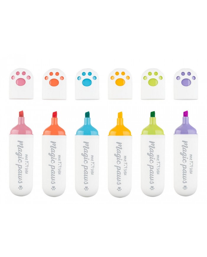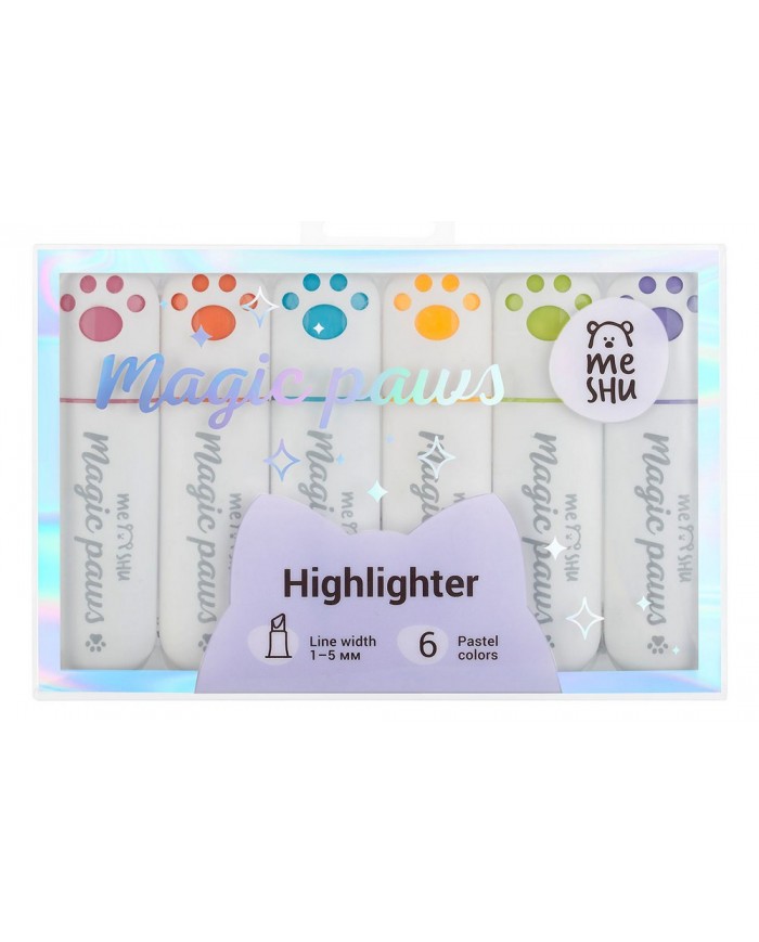 Набор текстовыделителей MESHU "Cute Paws" 06цв., пастельные цвета, 1-5мм, ПВХ бокс с европодвесом