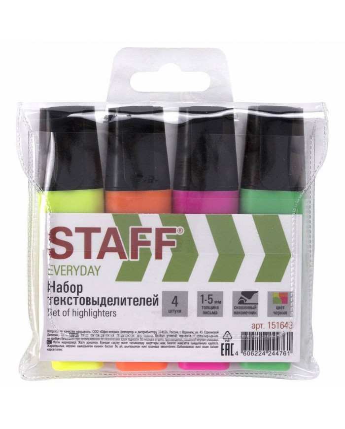 Набор текстовыделителей STAFF "EVERYDAY" HL-638, 4 шт., АССОРТИ, линия 1-5 мм,
