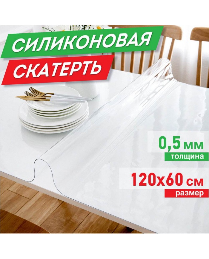 Силиконовая скатерть на стол, также известная как жидкое стекло или гибкое стекло, предназначена для защиты горизонтальных поверхностей от загрязнений и механических повреждений. Благодаря своей толщине 0,5 мм гибкое стекло на стол защищает от царапин, сколов и вмятин. Также скатерть силиконовая не боится пищевых масел и красителей и очень неприхотлива в уходе – жидкое стекло на стол достаточно протереть влажной салфеткой. Скатерть прямоугольная размером 120х60 см расстилается на любую поверхнос