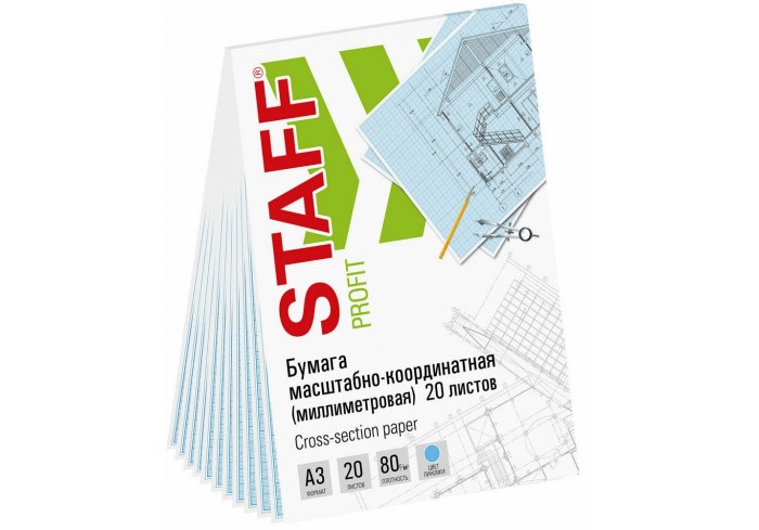 Бумага формата А3 (297х420 мм) и плотностью 80 г/м2. В наборе 20 листов. Цвет линовки - голубой. Отличается четкими линиями и точной миллиметровой раз..