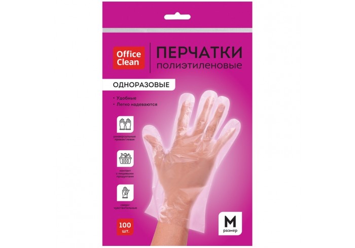 Перчатки одноразовые OfficeClean изготовлены из полиэтилена, благодаря чему надежно защищают руки от влаги, запахов, жира и грязи. Широко используются..
