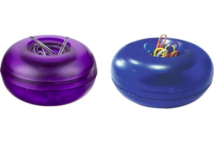Магнитная скрепочница круглой формы выполнена из полупрозрачного пластика. Открытая конструкция облегчает извлечение скрепок, а встроенный магнит пред..
