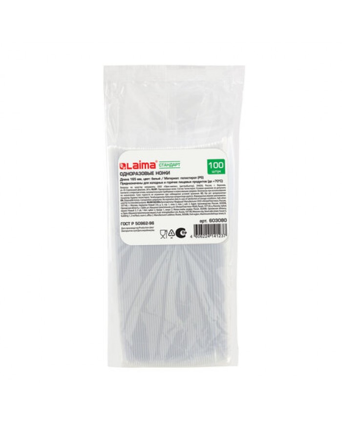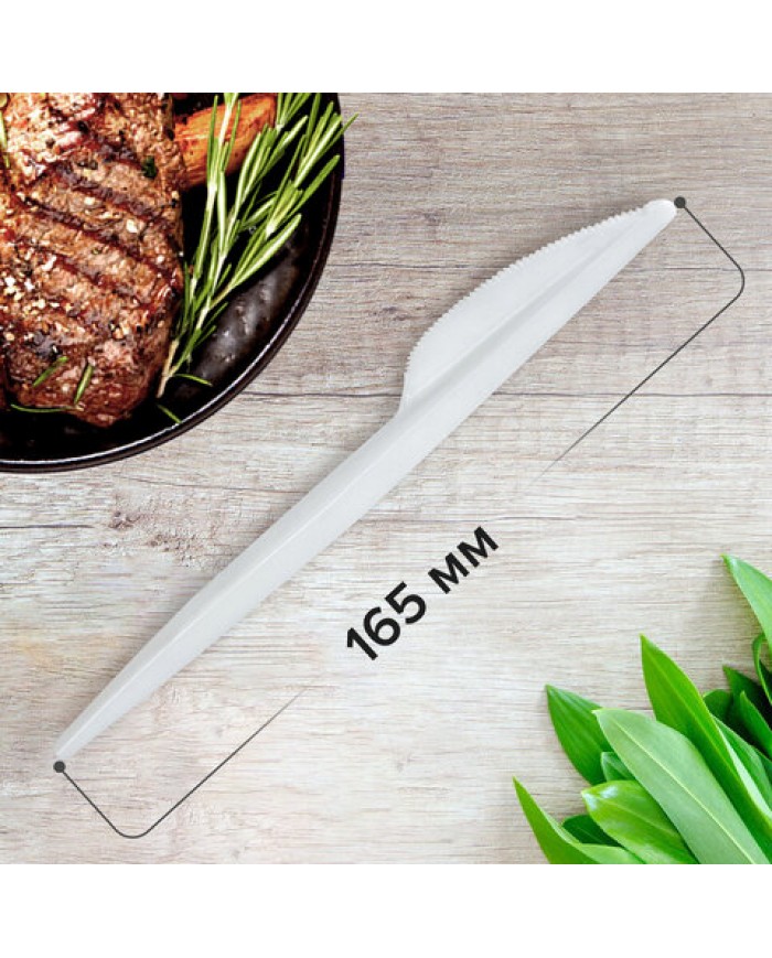 Нож одноразовый пластиковый 165 мм, белый, КОМПЛЕКТ 100 шт., СТАНДАРТ, LAIMA,