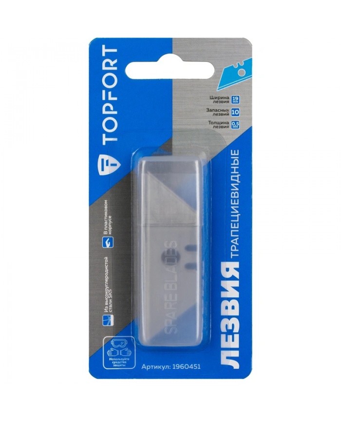 Лезвие для ножей запасное TOPFORT 19мм трапец., сталь, шир.цен.отв., 61x19x0,6 мм, 10шт/уп