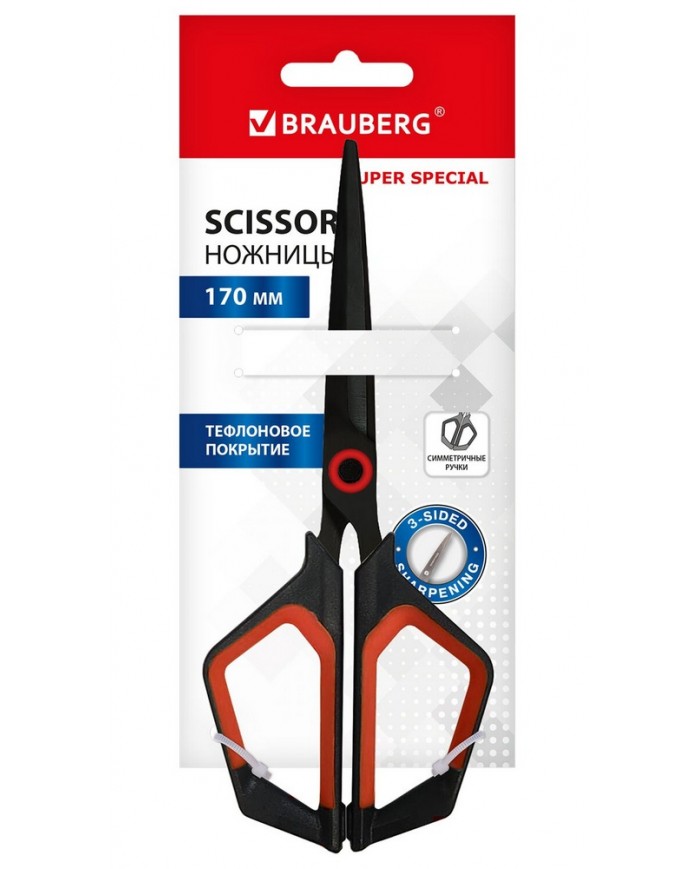 Ножницы BRAUBERG "Super special", 170 мм, черные, 3-сторонняя заточка, тефлоновое покрытие,