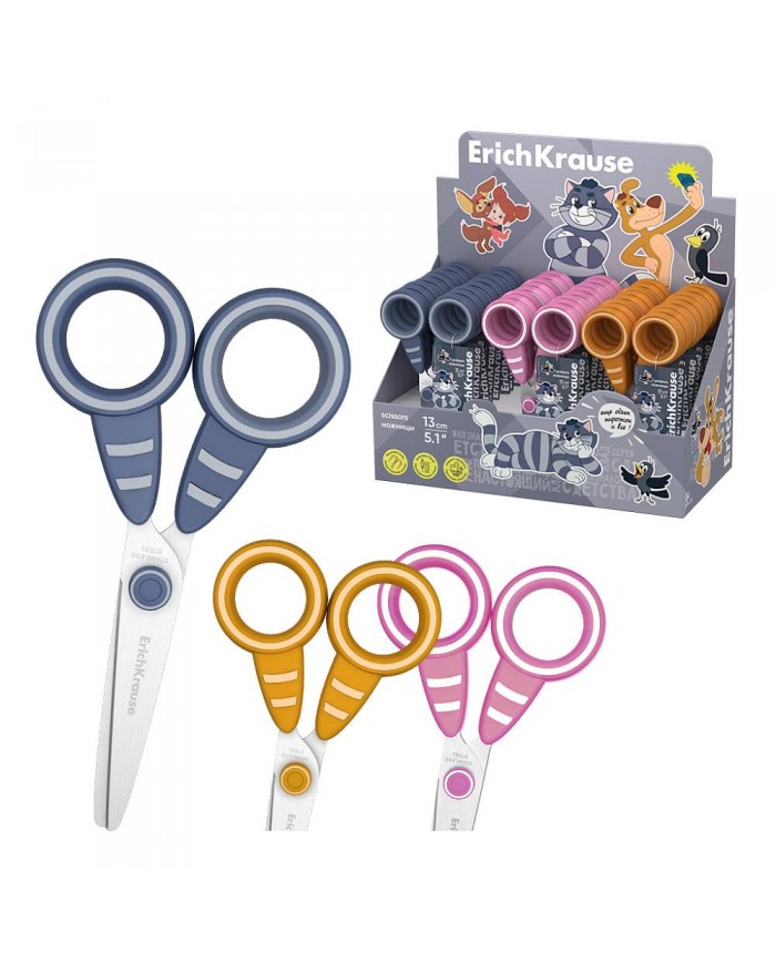 Ножницы ErichKrause Простоквашино, 13см, ассорти , с безопасными закругленными концами лезвий