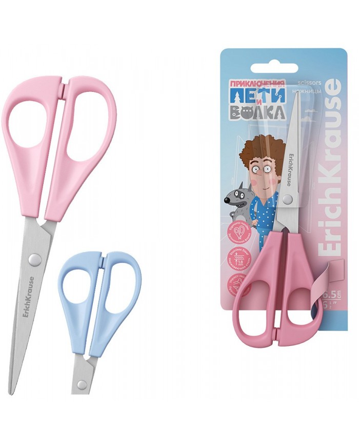 Ножницы ErichKrause Приключения Пети и Волка,16.5см,ассорти, с безопасными закругленн.концами лезвий