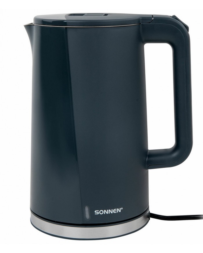Чайник электрический с двойными стенками SONNEN KT-8718B, 1,7 л, 2200 Вт, графитовый,