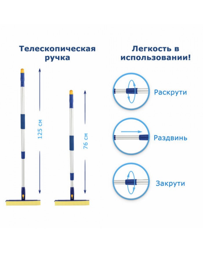 Окномойка LAIMA вращающаяся, телескопическая ручка, рабочая часть 25 см (стяжка, губка, ручка), для
