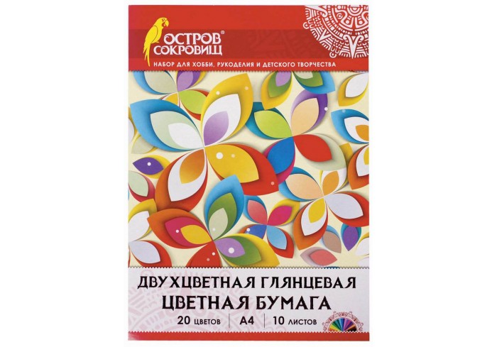 Набор мелованной (глянцевой) двусторонней цветной бумаги плотностью 80 г/м2 включает 10 листов формата А4 (200х280 мм) в 20-ти разнообразных и насыщен..