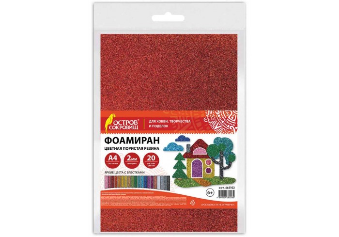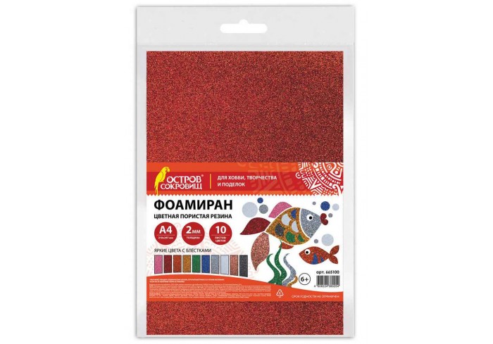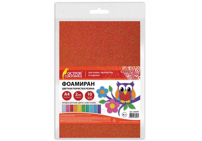Цветная пористая резина (фоамиран) ОСТРОВ СОКРОВИЩ в листах предназначена для хобби, творчества и рукоделия. 10 ярких цветов формата А4 позволят созд..