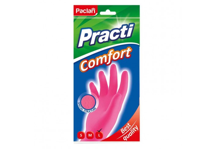 Перчатки резиновые Paclan "Practi.Comfort", р.L, розовые, пакет с европодвесом